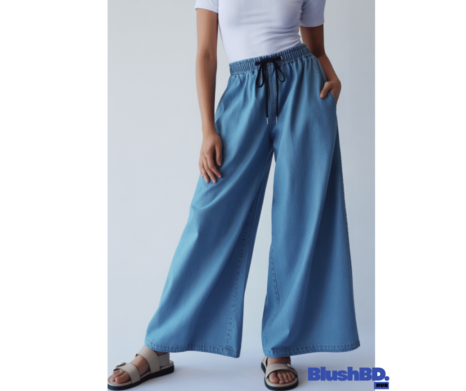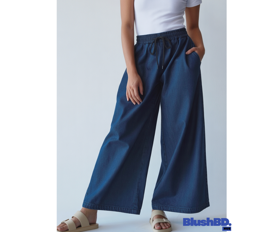 আপনার ওয়ারড্রোবে যুক্ত করুন নতুন স্টাইল ও কমফোর্টের সমন্বয়! আমাদের ক্লাসিক লেস-আপ ওয়াইড লেগ ব্যাগি ডেনিম প্যান্ট তৈরি হয়েছে সেই সব আধুনিক নারীদের জন্য, যারা চায় আরামদায়ক পোশাকেও থাকতে স্টাইলিশ। ১০০% পাতলা কটন ডেনিম কাপড় দিয়ে তৈরি, যা গরমের দিনে পরার জন্য একদম উপযোগী।